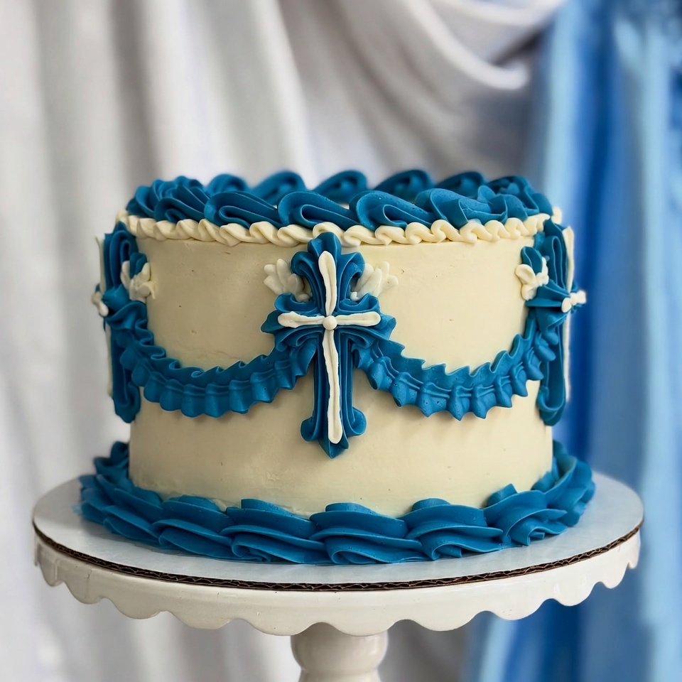 Bespoke communion cakes with elegant religious themes. Handcrafted from the finest ingredients with