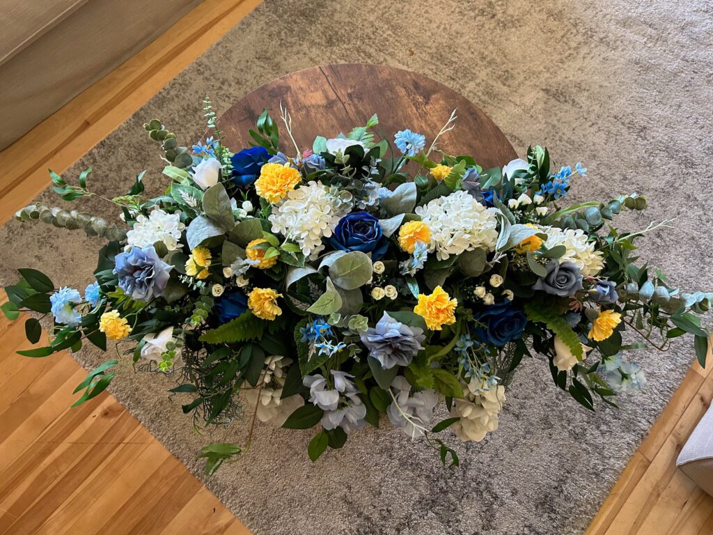 Delicate floral arrangements for church ceremonies and home celebrations.